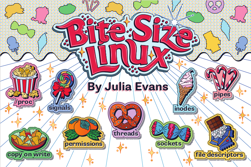 Confused about what a system call is? Heard the term "file descriptor" but not sure what it means? This zine is for you!! It has 19 important Linux concepts, each explained with a simple 1-page comic.